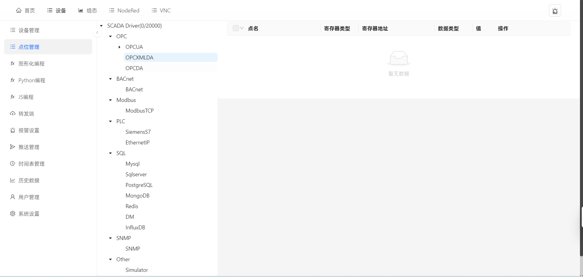 表管理; - 采集端支持几个行业网络协议:OPC UA、OPC XML-