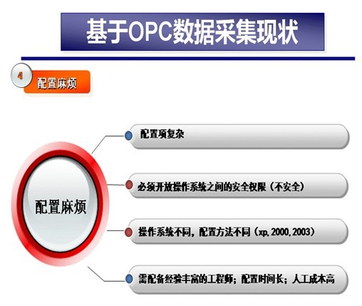 1、避免DCOM配置 众所周知,当OPC服务器和OPC客户端运行在不同计算机时,需要进行DCOM配置。由于DCOM配置纷繁复杂,不利于系统的维护。 南京钢铁股份有限公司的现场使用了浙大中控OPC服务器,SCADA系统原来当做OPC客户端运行在分布式的计算机上。为了解决上述提出的问题。南京钢铁股份有限公司使用了我司提供的OPC2Modbus 软件网关,运行在OPC服务器同一台计算机上,把OPC服务器内部的数据点映射到OPC2Modbus内部的Modbus TCP服务器上。这样SCADA系统则通过Modbus TCP协议和OPC2Modbus软件网关通讯,实现了SCADA系统和浙大中控OPC服务器之间的通讯,避免了DCOM配置。