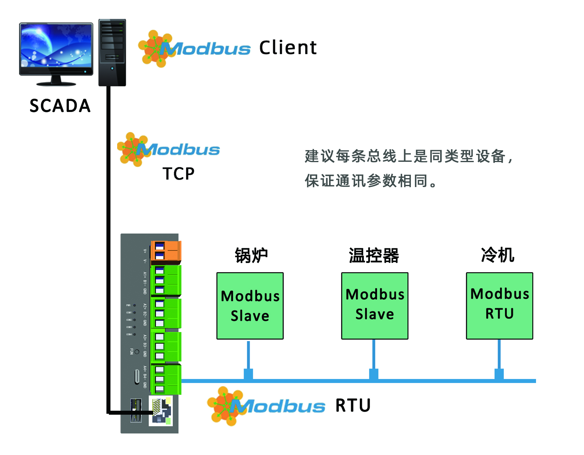 场景二、Modbus多主多从
