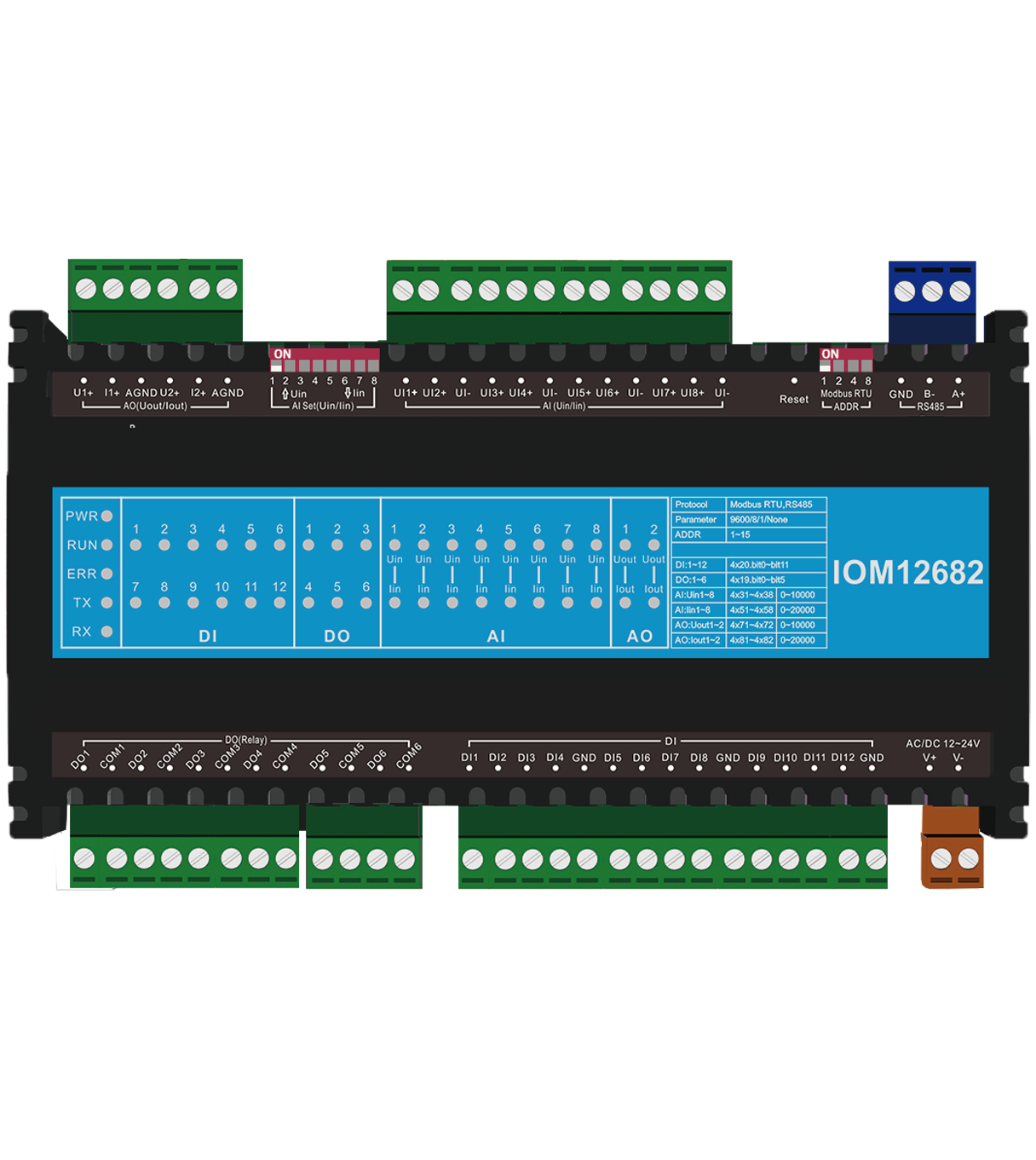 本产品采用主流的ARM核 32位微处理器,支持Modbus RTU协议。既可以作为DDC、PLC等控制器的I/O模块,也可以单独使用。